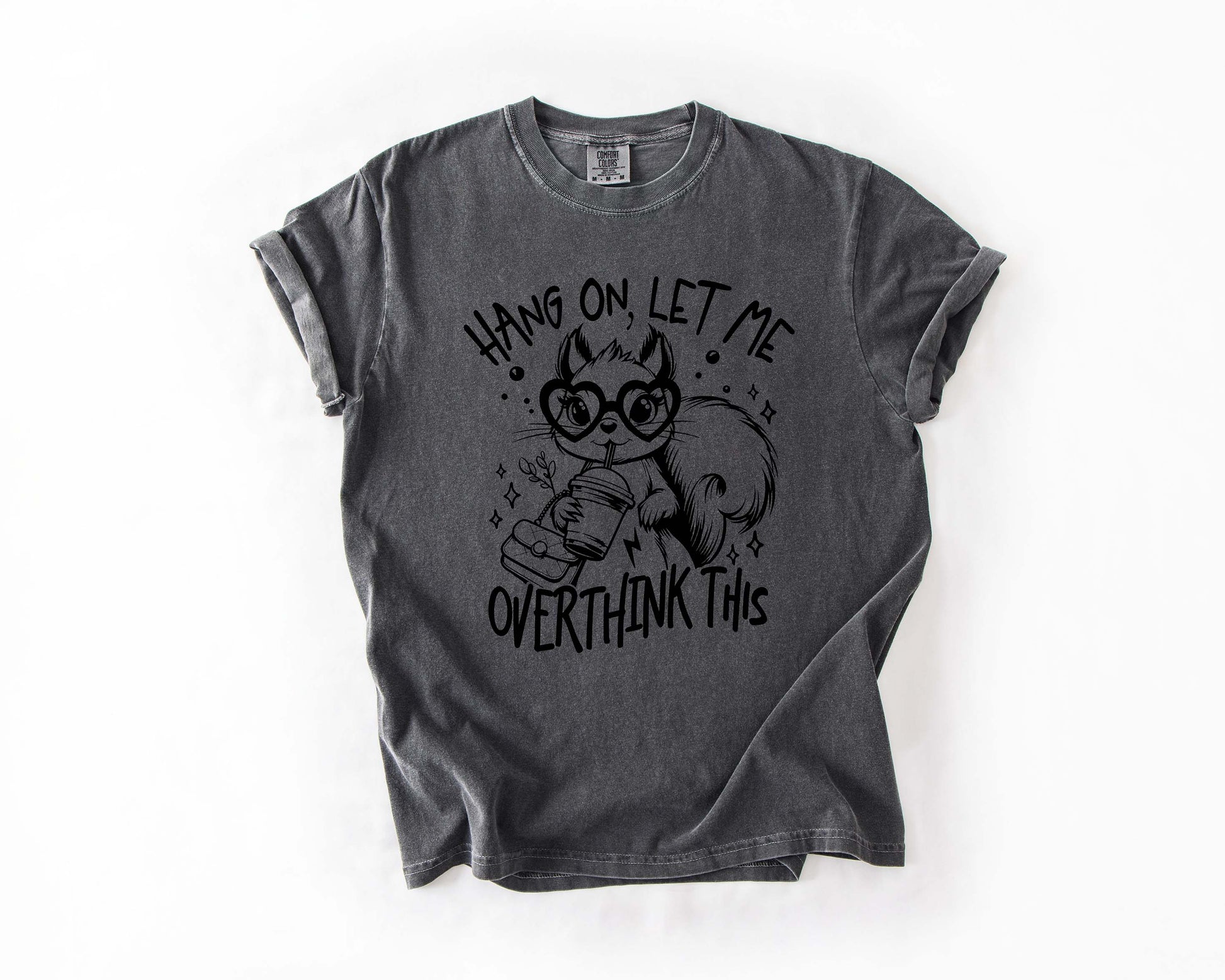 For all the deep thinkers, daydreamers, and “what if?” champions—this tee gets you. Featuring a quirky squirrel in oversized glasses sipping coffee, this playful design says exactly what we all feel sometimes: “Hang on, let me overthink this.”