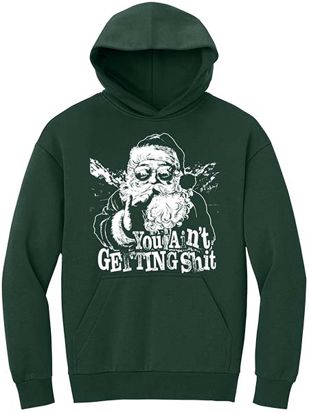 Keywords: funny Christmas hoodie, sassy Santa sweatshirt, adult humor Christmas hoodie, you ain’t getting sh*t hoodie, sarcastic holiday hoodie, naughty list sweatshirt, Christmas attitude hoodie
